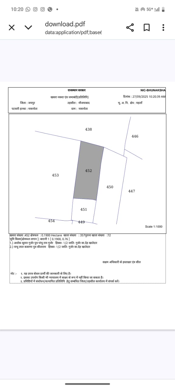 Nasnoda village farm house jameen manglam city ke pass 2300 gaj jameen, Nasnoda village farm house jameen manglam city ke pass 2300 gaj jameen
